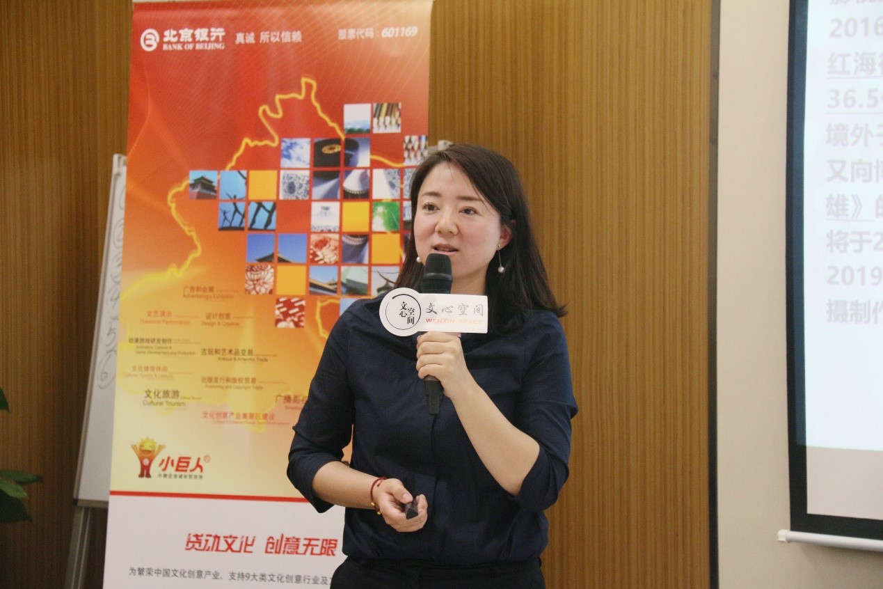 在随后的发言中,北京银行文创金融事业总部总经理徐毛毛讲道:北京银行作为专注于文化科技领域的银行,围绕北京全国文化中心定位,专门成立了文创金融事业总部,服务文化企业发展。希望通过本次沙龙,真正将金融服务落实到有需求的企业。