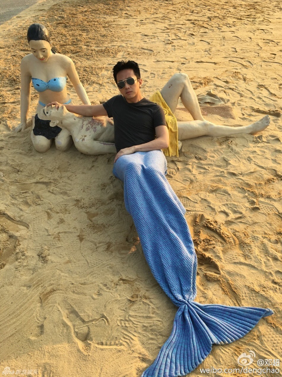 来源标题:组图:邓超躺沙滩变身美人鱼 身姿妖娆逗比范儿