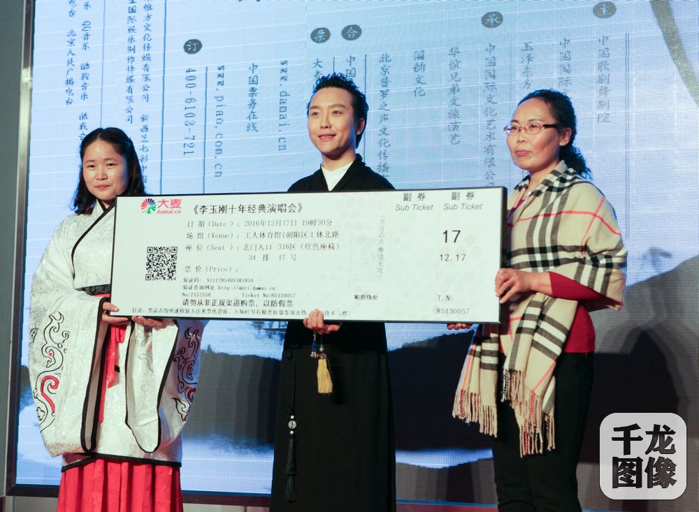 据悉,《李玉刚十年经典演唱会》全球巡演的首站将于今年12月17日,在北京工人体育馆正式举办,本次演唱会的票务合作大麦网于发布会当日正式开票。发布会现场,李玉刚向粉丝代表赠送了12月17日工体十年演唱会的仿真大票,并献唱十年经典演唱会主题曲目《刚好遇见你》。