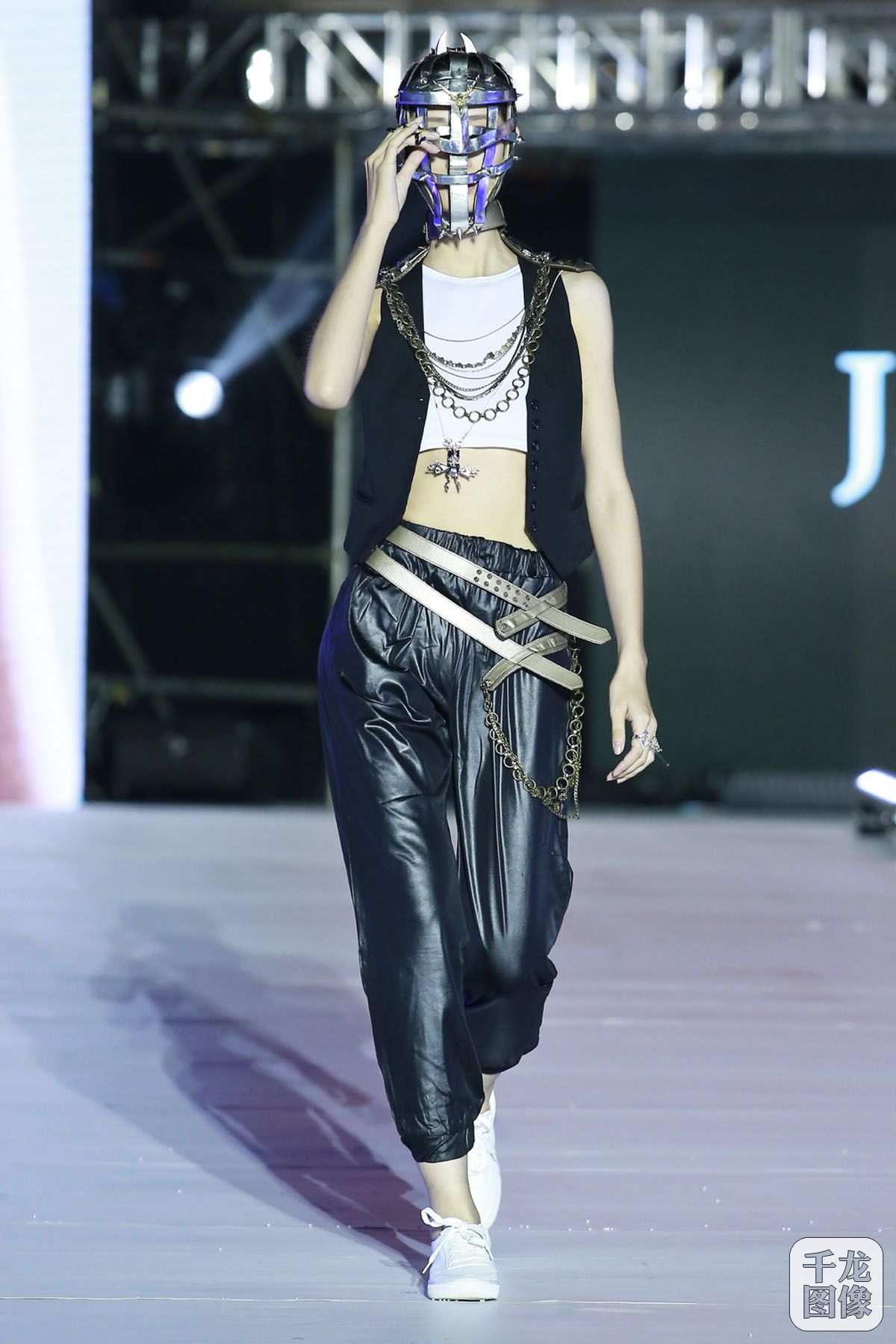9月16日,“城市素描·霓裳重庆”2018中国重庆国际时尚周开幕盛典在重庆市南岸区南滨路弹子石广场举行。图为模特展示设计师的作品。千龙网发 主办方供图