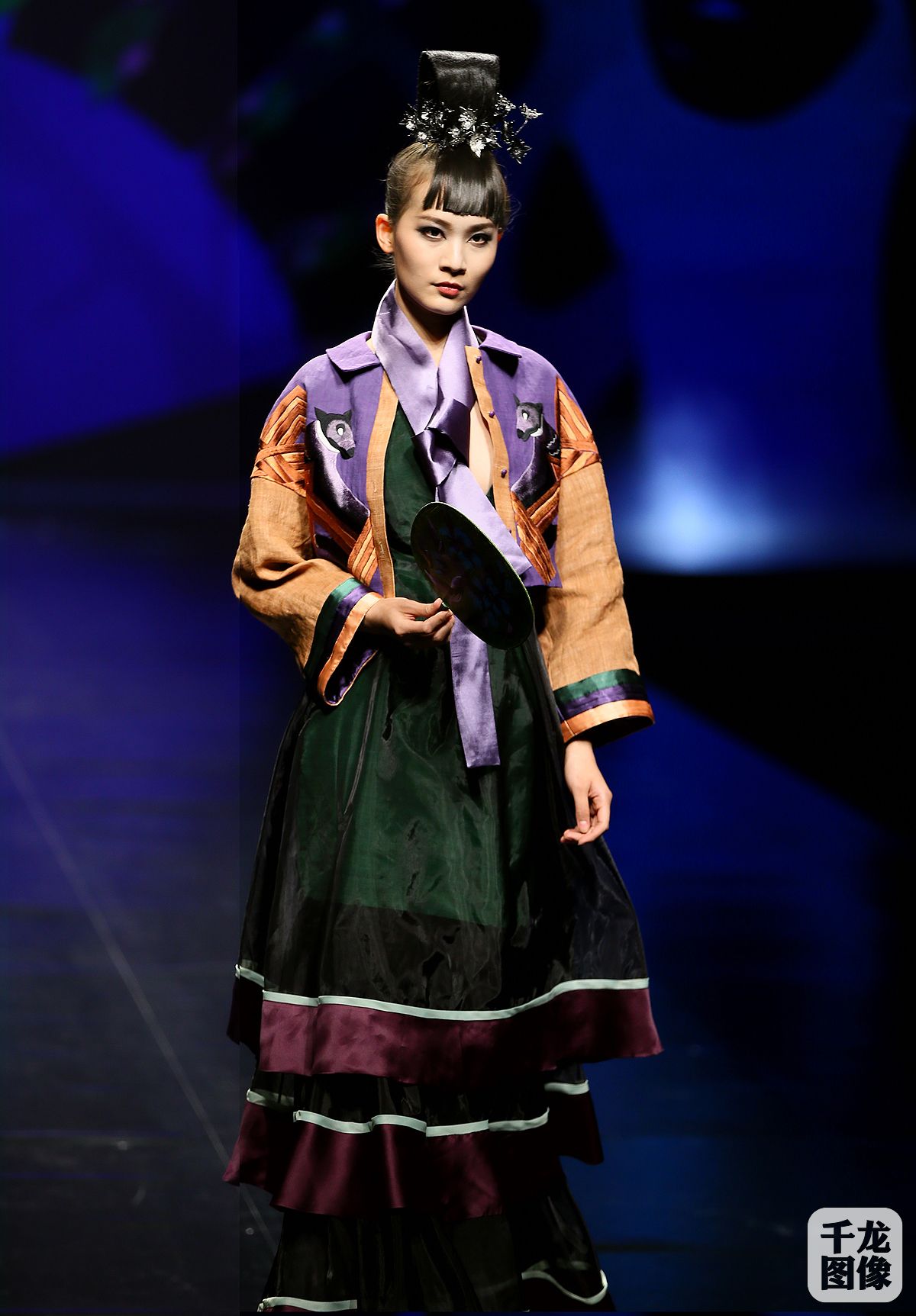 10月31日,著名时装设计师张义超携“以文化塑根、非遗注魂、夏布为容、折扇塑形、海棠晕染、瑞兽点睛、古剧作衬”的60套荣昌夏布创意作品登陆中国国际时装周,呈现立足中国传统文化、承载文明基因、融入当代创意思维的非遗活化继承成果。图为模特展示设计师张义超的作品。千龙网记者 戚连民摄