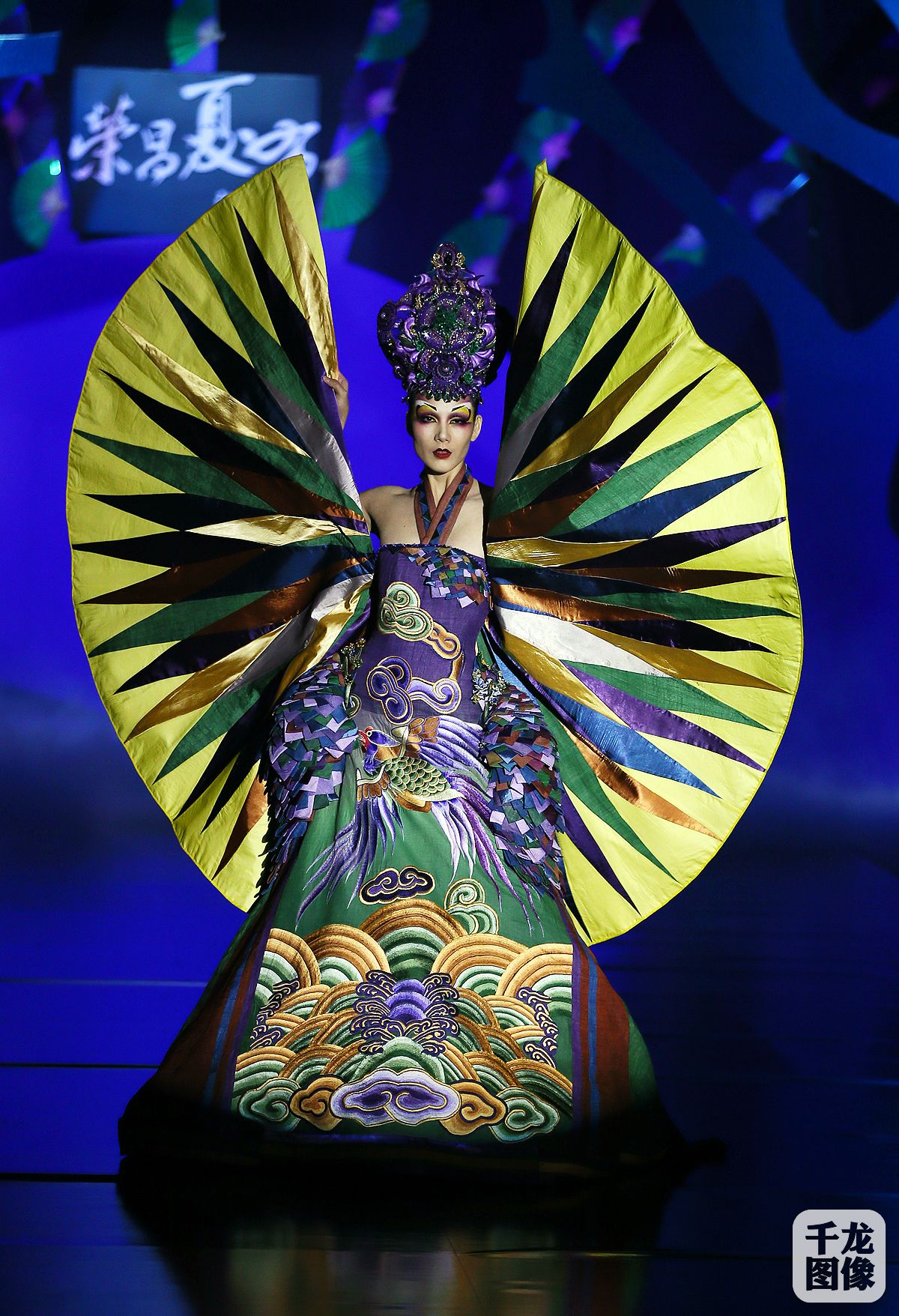 10月31日,著名时装设计师张义超携“以文化塑根、非遗注魂、夏布为容、折扇塑形、海棠晕染、瑞兽点睛、古剧作衬”的60套荣昌夏布创意作品登陆中国国际时装周,呈现立足中国传统文化、承载文明基因、融入当代创意思维的非遗活化继承成果。图为模特展示设计师张义超的作品。千龙网记者 戚连民摄