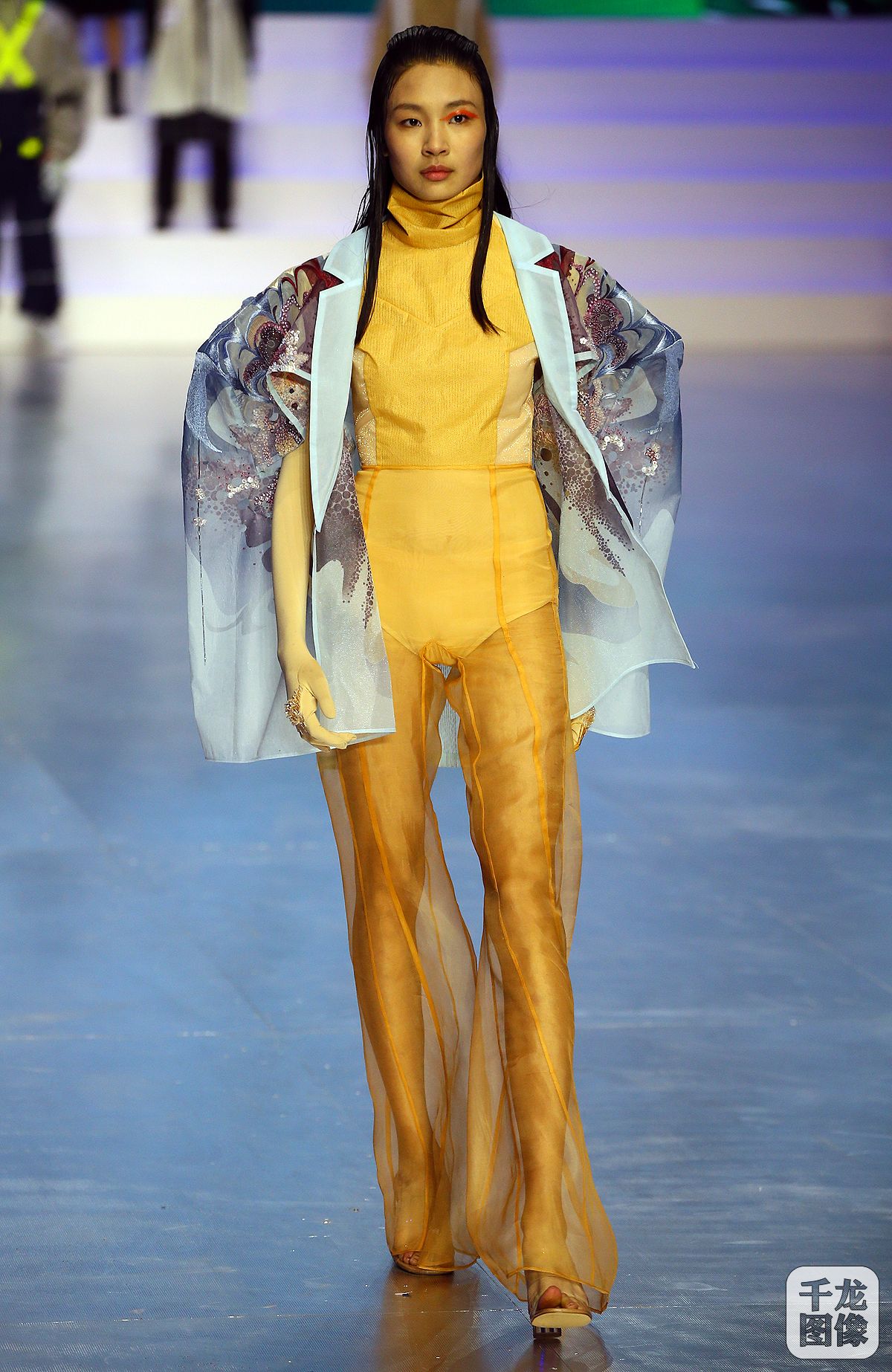 3月25日,模特在开幕式上举行的“汉帛奖·第27届中国国际青年设计师时装作品大赛”上展示参赛作品。 当日,中国国际时装周2019/2020秋冬系列在北京拉开帷幕,为期一周的时装周期间将举行近百场时装发布、专项大赛以及时尚论坛等活动。 千龙网记者 戚连民摄