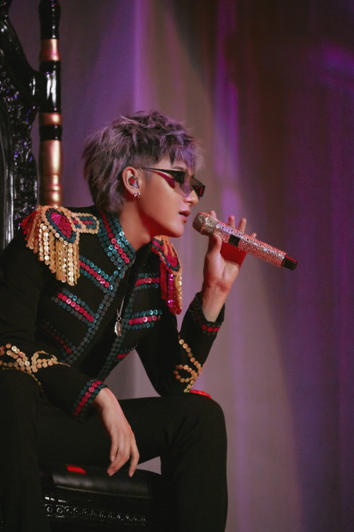 【图2黄子韬以紫灰色发型+金穗燕尾服造型出场】