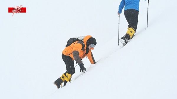 历经两个多小时,陈学冬终于到达海拔4700米处,达到了人生新的“高度”。然而刚坐下来没多久,陈学冬便提出想要继续登上身后一座更高的小山峰。陈学冬的提议遭到了教练的拒绝,担心60°的陡坡和松软的雪质太危险。但在陈学冬的坚持下,教练只好先行探路,陈学冬紧跟教练身后开始继续登山。