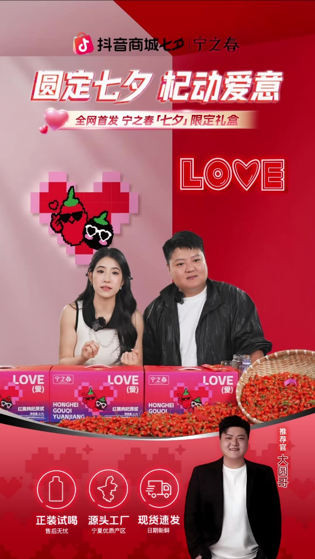 宁之春瞄准枸杞原浆“女性送男性”礼赠需求空白,以“她经济”破圈男性主导品类。在策略上,邀请达人@大圆哥空降七夕主题直播,结合FeedsLive投放及红果短剧“剧可点磁贴”实现低成本曝光。构建“情侣日常+七夕礼赠”达人矩阵,强化“女性送男性”差异化标签。活动周期内,宁之春直播GMV环比增加25%,达人进播当天GMV环比增加350%,在食品饮料行业中,“七夕礼盒”行业心智联想份额提升超46%,排名第一。