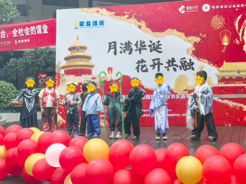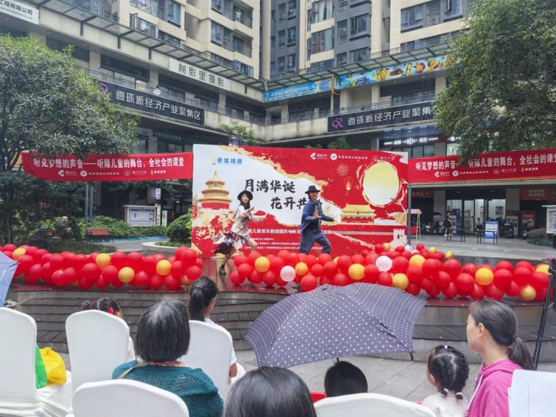2025年9月27日上午,由成都爱益语康社会工作服务中心主办、北京爱的分贝基金会支持的《月满华诞,花开共融》——吹号天鹅儿童音乐剧团双节公益嘉年华活动,在龙湖上城社区广场正式开展。这是一场献给所有孩子的节日礼物,更是一次关于融合、关爱与成长的温暖倡导。