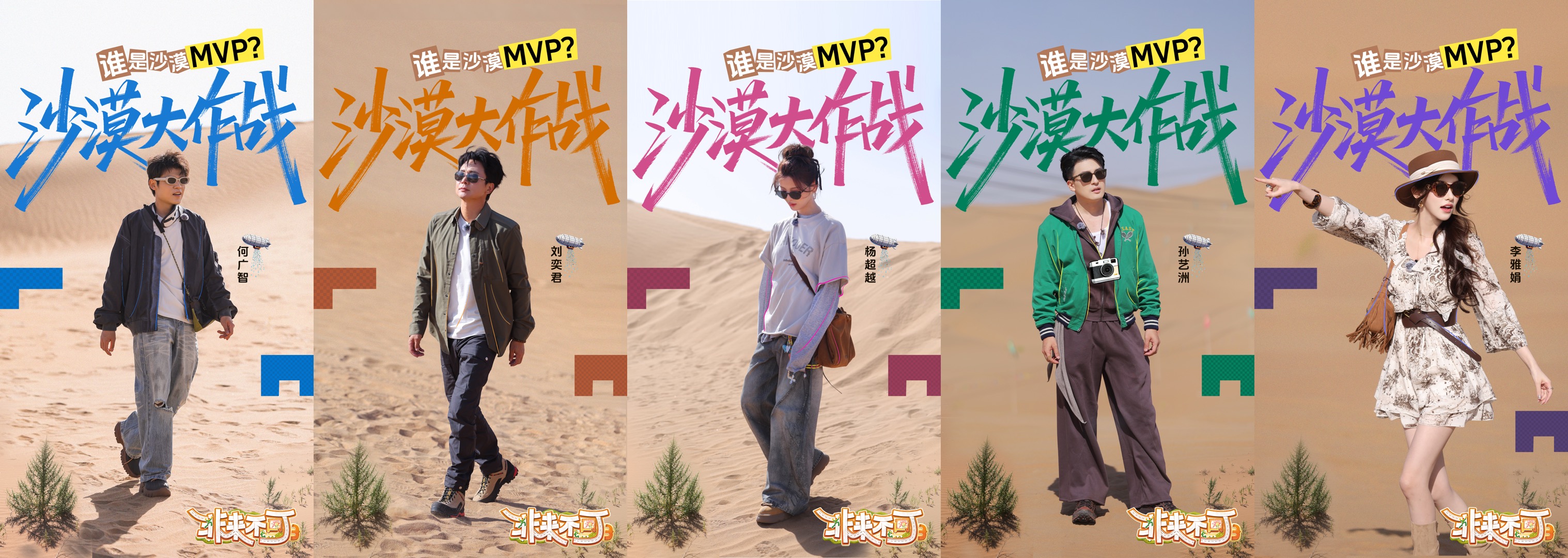 首期节目便将“沉浸式游学”搬进浩瀚的库布齐沙漠——烈日照耀下的无垠沙海、呼啸而过的长风,加上“沙漠边界被神秘力量改写”的悬念设定,让这场探索充满未知与挑战。研学团刚踏入沙漠,便被“非来不可的旗子标记”指引,围绕“破冰”与“治沙”展开双重体验。先是通过寓教于乐的游戏传递沙漠知识,“飞艇降雨”模拟沙漠降水过程,团员们分工操控“云层”、地面接雨,在比拼接雨量的同时,直观感受“年降水量不足奶茶杯、蒸发量却能抽干游泳池”的极端环境。此后又通过一系列的游戏实践,了解到“先固沙后种植”的治沙步骤,更见证了库布齐沙漠从“死亡之海”到“绿洲奇迹”的蜕变。团员们还聆听了治沙人的故事,从“逃避沙漠”到“主动治理”,从修770公里公路到让植被覆盖率提升,每一个细节都让人感受到人与自然抗争的坚韧力量。