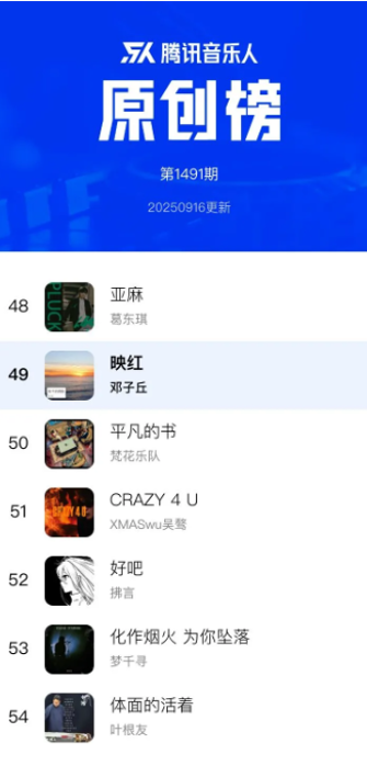 邓子丘出生于江西德安,这位经济学硕士出身的音乐人,曾以《成长》《离亭燕问君》《跑》等作品在音乐界崭露头角。他此次创作《映红》,是将个人对祖国的热爱,延伸至对英雄集体的礼赞。歌曲刚发行第三天,就拿到腾讯音乐、QQ音乐原创歌曲全国排行榜第49名、“制热音乐”全国推广榜第三名、车载流行音乐优质上榜作品。