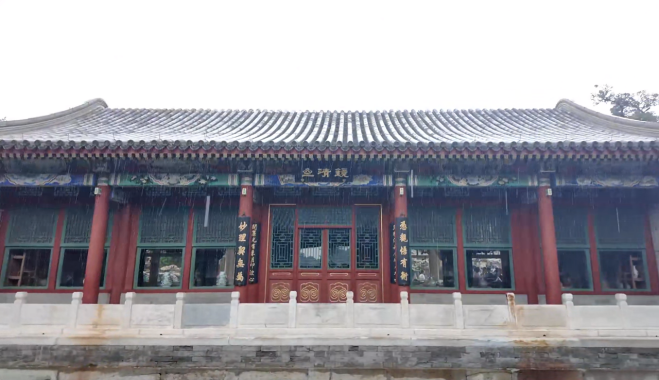 走进快雪堂,墨香扑面而来——这里因王羲之的《快雪时晴帖》石刻,在乾隆时期增建并命名,48方魏晋至元代的书法石刻镶嵌在后院墙壁,颜真卿、柳公权等名家作品俱全,其中《快雪时晴帖》仅28字却被誉为“天下法书第一”,如今这里仍是书法爱好者的“朝圣之地”。殿内地面的方形洞口更藏着古人的“黑科技”——“地龙” 供暖系统:地下“蜈蚣道”烧炭后热气循环,堪比现代地暖,“我还以为是藏宝的地方,没想到是冬天取暖用的!” 甘望星笑称。院内的 “垂花门” 也藏着密码:作为乾隆西苑花园的 “二门”,双层垂柱如花朵下垂,对应传统四合院 “大门不出二门不迈” 的礼仪。