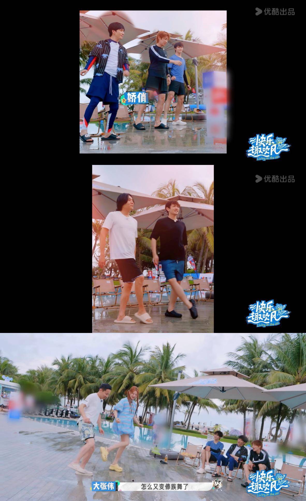 本期节目创新引入时下最热门的团播挑战环节,为观众呈现了一场精彩纷呈的舞台大秀。在集体学习扫腿舞的过程中,全员贡献出令人捧腹的表演:杨超越全程笑场不断,在徐志胜魔性舞姿的带领下,将优雅的扫腿舞跳出了“原地起飞”的架势,动作逐渐跑偏,画面诙谐有趣;大张伟、田嘉瑞与高瀚宇三人组则展现出惊人默契,动作整齐划一中带着几分俏皮,引来阵阵喝彩;而秦昊与颜人中全情投入表演,秦昊更是不忘频频与队友互动,一声“看我看我”尽显活泼本色。