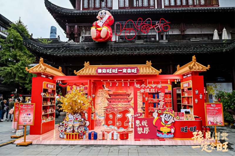10月17日,上海豫园商城中心广场,一座红色调的中国风快闪店在秋日暖阳中正式亮相。牌匾上“豫见旺旺 一定会旺”的字样与豫园的古建筑飞檐相映成趣,吸引大量游客驻足。这家由旺旺米果事业部打造的旺旺x豫园上海旅游限定祈旺主题快闪店,不仅将品牌经典产品与豫园文化地标深度融合,更通过“民族旺仔天团”、“祈旺抽奖”等创意互动,迅速成为沪上社交媒体的打卡热点。业内分析认为,旺旺此次跨界快闪,是零食行业从“货架销售”向“场景体验”转型的典型样本,也为经典快消品牌的年轻化策略提供了新思路。
