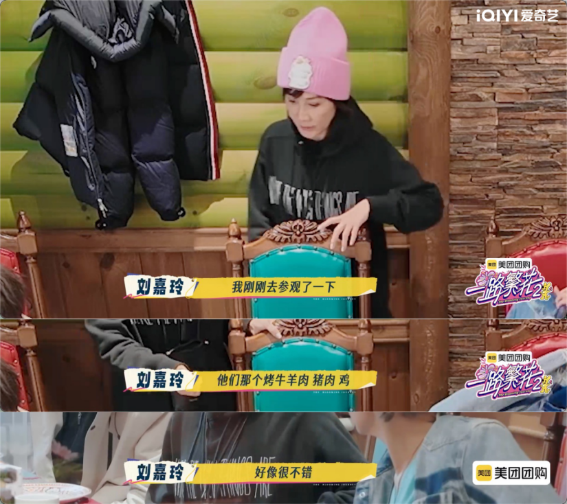 由于气温骤降,刘晓庆所住蒙古包里的暖炉迟迟未开、热水也未准备好,宁静主动提出换房,让她先行休息,贴心的举动也让观众感受到繁花团彼此照应、真诚相待的氛围。