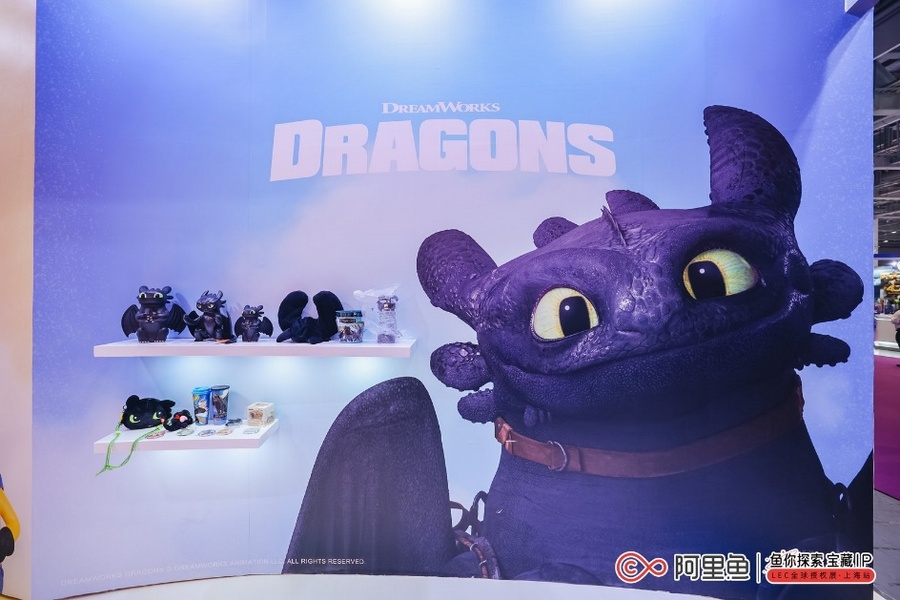 阿里鱼x环球产品与消费体验展区汇聚了侏罗纪世界、驯龙高手、盖比的娃娃屋及功夫熊猫四大人气IP。伴随《新·驯龙高手》与《侏罗纪世界:重生》的热映,相关IP热度持续攀升,推出的多款电影周边和授权商品深受消费者喜爱。