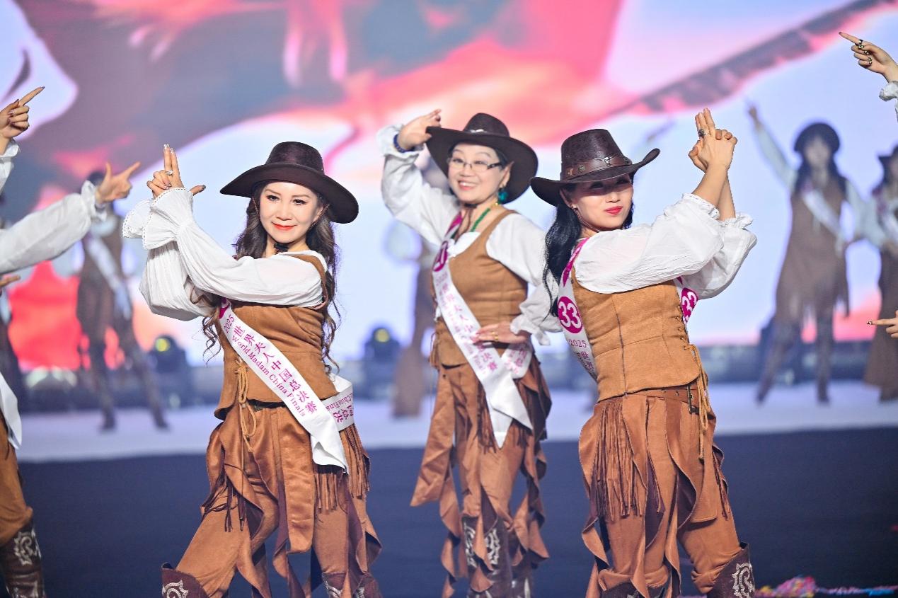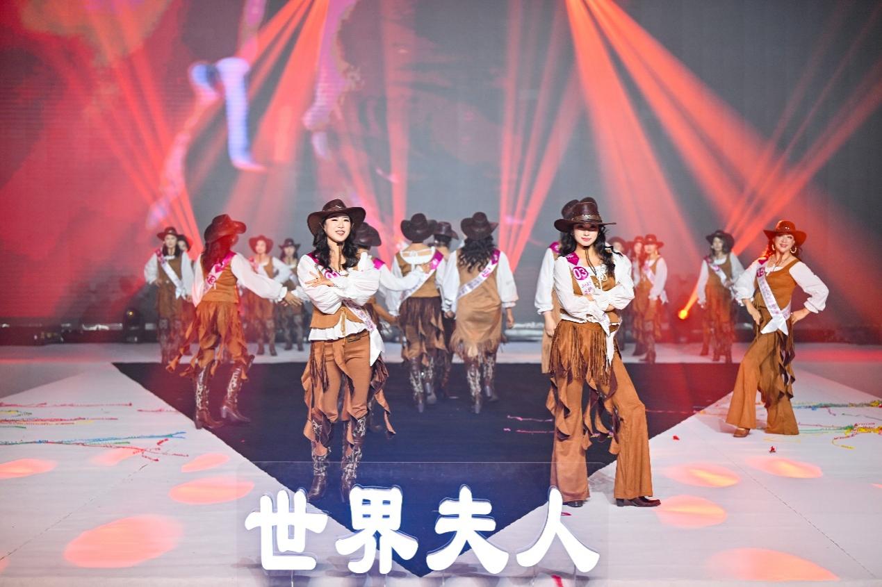 晚会第一篇章以“西部风尚”为主题,全体参赛选手身着时尚牛仔服饰,以活力四射的舞台表现,展现了当代女性自信洒脱的时尚风貌,将经典西部元素与现代审美完美融合,呈现出热情奔放的舞台效果。
