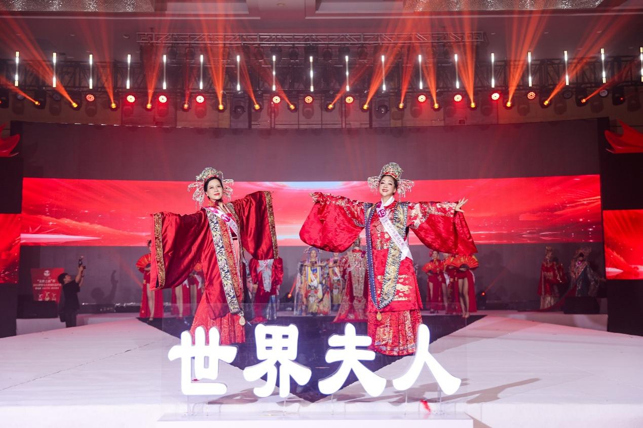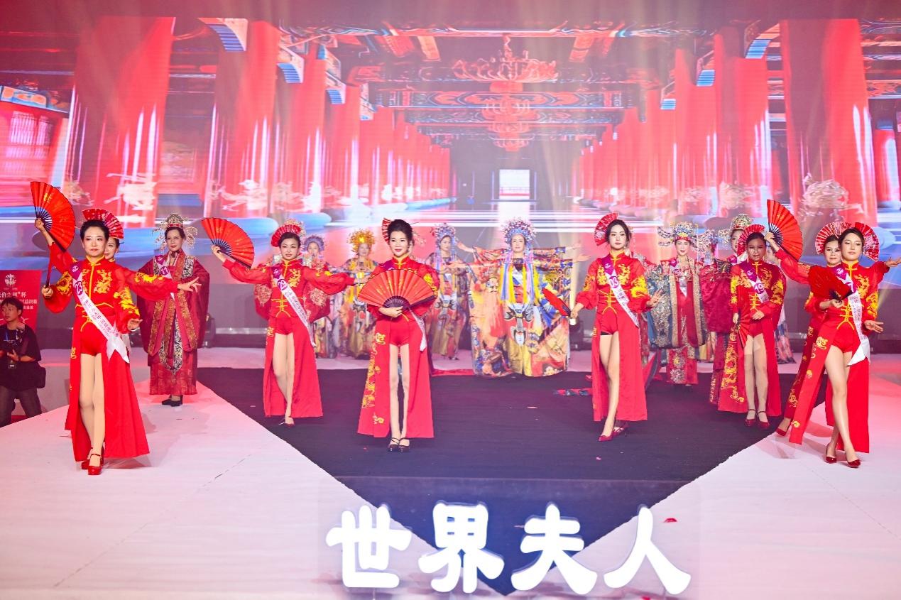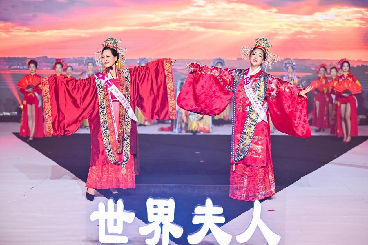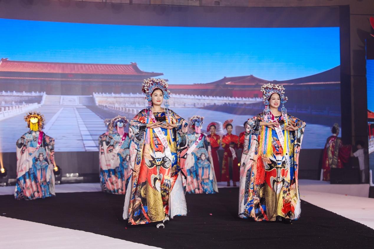 第二篇章“东方情韵”中,六名舞蹈演员身着精致旗袍,手持民国复古行李箱,以细腻深情的舞蹈语言,演绎了全球华侨深切的思乡之情。随后,20多位世界夫人选手化身为大唐盛世的使者,将传统京剧精髓与现代改良东方美学巧妙融合,展现出跨越时空的东方韵味与典雅气质。