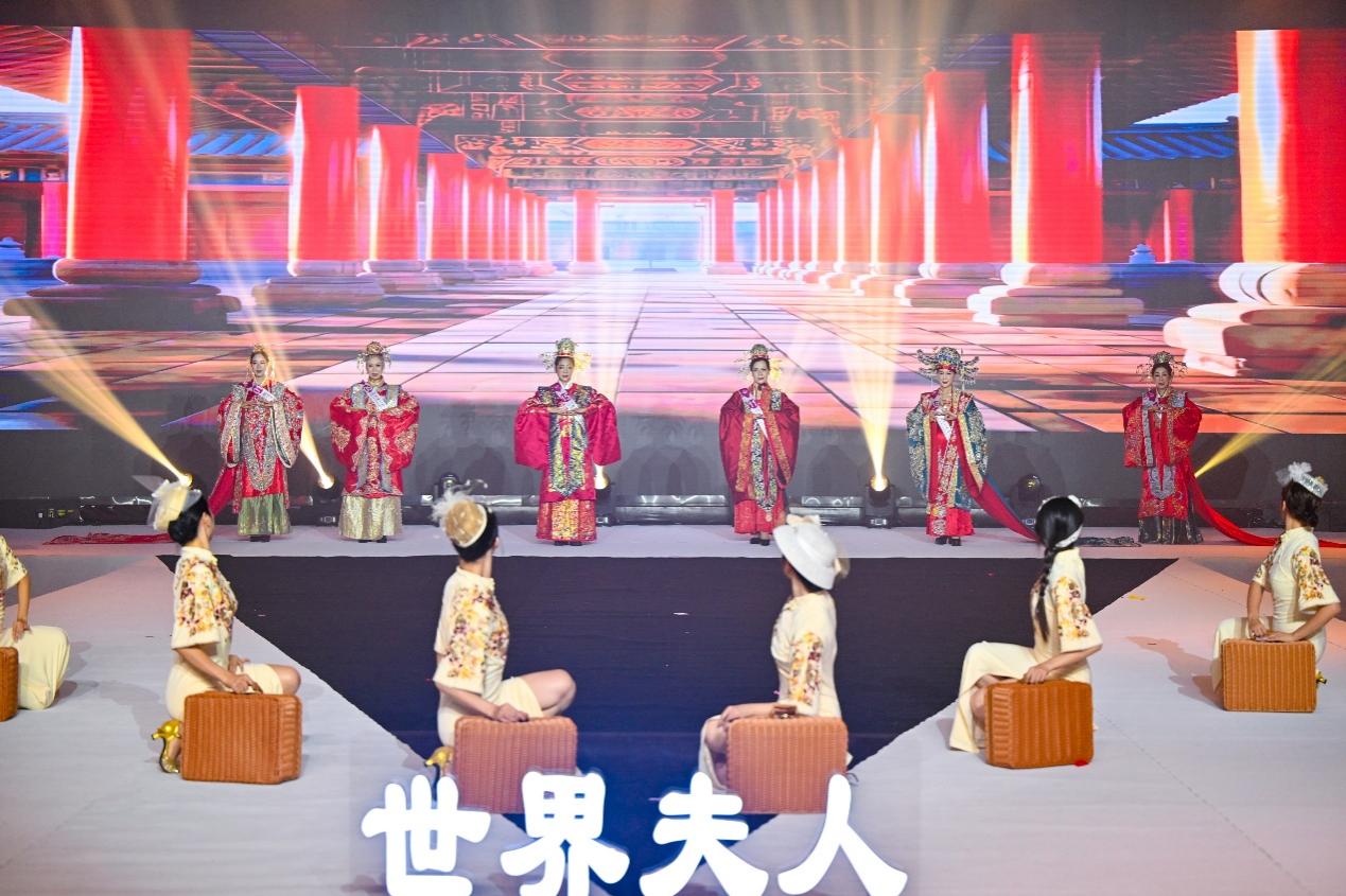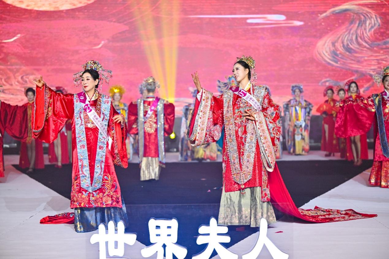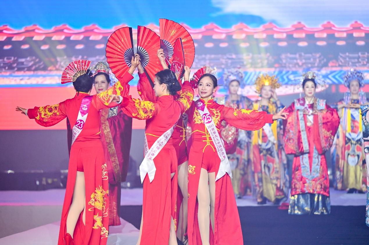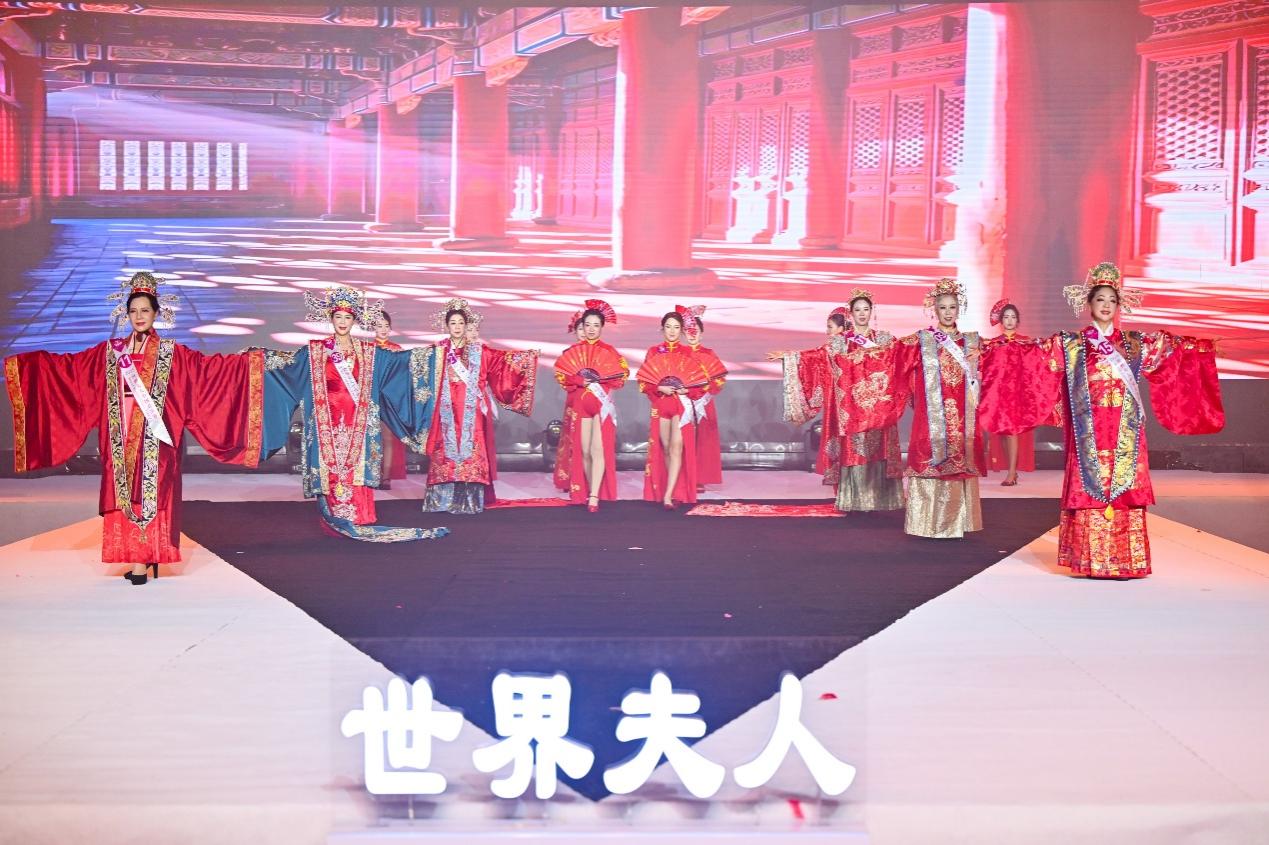 第二篇章“东方情韵”中,六名舞蹈演员身着精致旗袍,手持民国复古行李箱,以细腻深情的舞蹈语言,演绎了全球华侨深切的思乡之情。随后,20多位世界夫人选手化身为大唐盛世的使者,将传统京剧精髓与现代改良东方美学巧妙融合,展现出跨越时空的东方韵味与典雅气质。