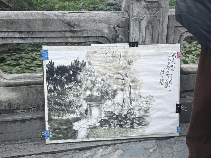 《书画里的中国》第三季的直播中,青年画家陈泽谦在北海公园的写生活动,完成了一场跨越时空的艺术对话。这场通过北京时间客户端进行的沉浸式直播,展现了一位年轻艺术家如何用传统的笔墨语言,捕捉皇家园林的永恒之美。