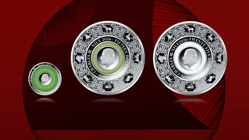 据介绍,“天赐鸿福”马年生肖纪念大银币,正面高浮雕五花宝驹神采飞扬,乾隆御笔“天赐鸿福”端庄矗立,搭配卷草纹、金钱纹与三交六椀菱花纹,寓意富贵平安、好运连连。背面正中浮雕英国国王查尔斯头像,头像外围以金镶玉工艺环绕北京奥运奖牌同源的龙纹玉环,象征龙马精神的薪火相承;币身外圈再现八大历代名马,千年神骏齐聚一币,记录中华民族与骏马同行的壮阔史诗。