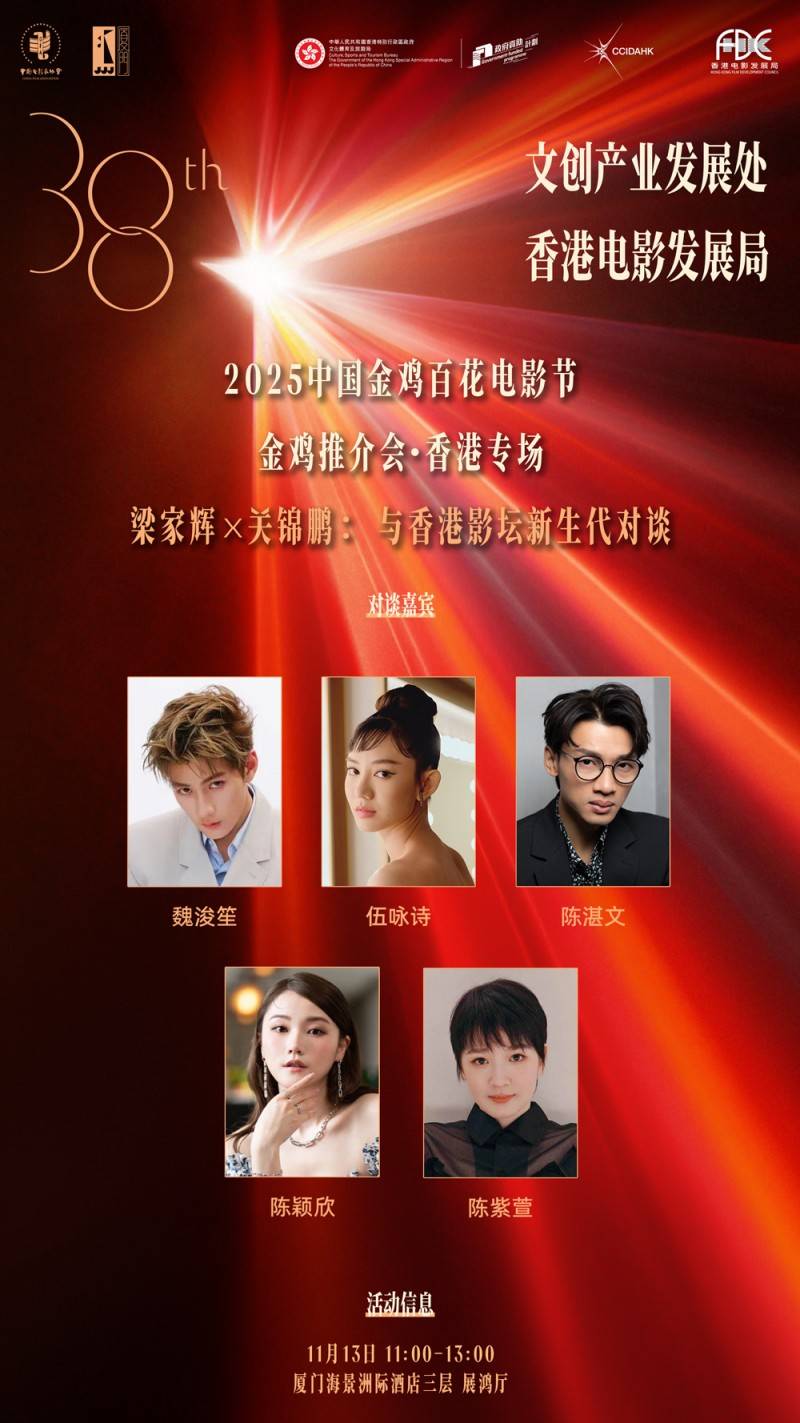 第38届中国金鸡百花电影节金鸡推介会·香港专场活动将于2025年11月13日上午11时在厦门海景洲际酒店展鸿厅隆重举行。本次活动由香港特别行政区政府文化体育及旅游局文创产业发展处与香港电影发展局联合主办,主题为“梁家辉x关锦鹏:与香港电影新生代对谈”,以“传承与创新”为核心表达,将汇聚香港电影的中坚影人,共同展望香港电影的未来发展。