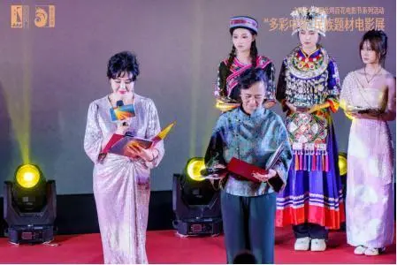 启动仪式现场流程紧凑有序,民族风情与仪式感交融。活动以杨小宇带来的歌曲《茶歌》拉开帷幕,随后播放2025年“多彩中华”民族题材电影展映宣传片《奋斗》,点燃现场氛围。中国夏衍电影学会会长、国家一级导演江平、上海音乐学院作曲系副教授、主持人、作曲家居文沛作为主持人登场,以深情开场词致敬中国电影百年历程,并逐一介绍到场领导嘉宾。