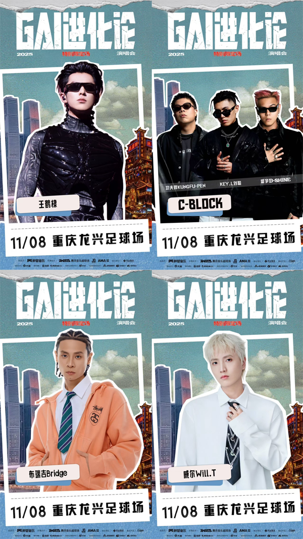 此前,《GAI进化论》巡演在2024至2025年间已走过十站万人体育馆,场场爆满,积累下超高口碑,为这次体育场级别的突破奠定坚实基础。从万人体育馆到五万人体育场,GAI用一场场登峰造极的进化演出展现着内在的巨大能量,《GAI进化论》体育场演唱会门票两次开票全部秒售罄,售票后官宣了此次的演出嘉宾有王鹤棣、C-BLOCK(盛宇、刘聪、功夫胖)、布瑞吉、威尔,强大阵容令歌迷无比惊喜,高呼票价超值!开演前夕重庆站GAI痛楼前人山人海,粉丝提前开唱狂欢,演出过程中#GAI演唱会##GAI体育场统治级上座率##GAI的嘉宾是王鹤棣#等话题冲上微博热搜,歌迷表示“种种迹象显示,这个GAI周延,越大的舞台表现越好,体育场的声场更开阔,效果比体育馆更好!”粉丝用实际行动证明了GAI的超强票房号召力,也用数据证明了中文说唱具备支撑大型商业演唱会的潜力。GAI则用一场超越性的演出证明:中文说唱已经进入全新的体育场时代。