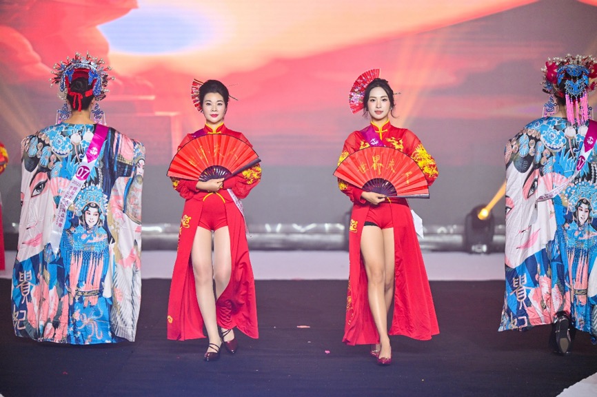 第二篇章“东方情韵”中,六名舞蹈演员身着精致旗袍,手持民国复古行李箱,以细腻深情的舞蹈语言,演绎了全球华侨深切的思乡之情。随后,20多位世界夫人选手化身为大唐盛世的使者,将传统京剧精髓与现代改良东方美学巧妙融合,展现出跨越时空的东方韵味与典雅气质。