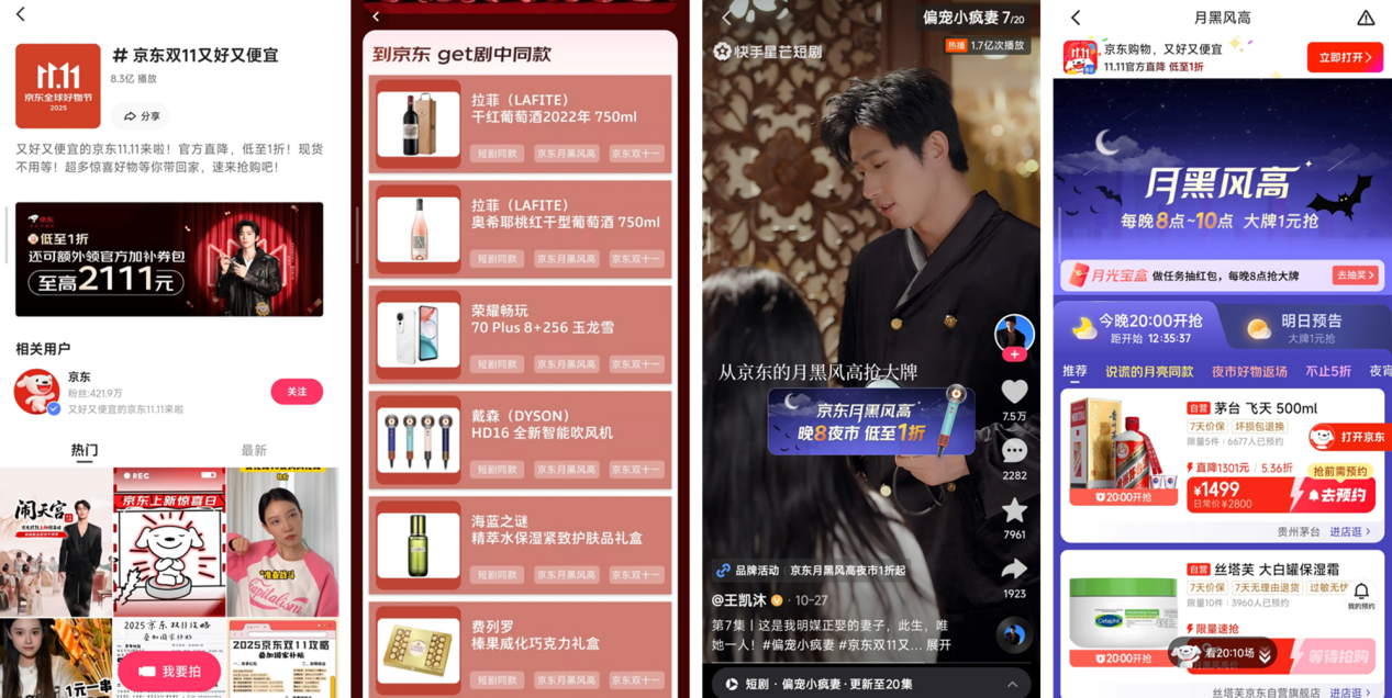 京东11.11与快手星芒短剧的合作,正是对该机制的深度应用与价值验证。借助快手的科学选剧体系,京东锁定7部不同题材的精品短剧,实现对目标人群的全面覆盖;围绕剧集调性对潜在兴趣人群进行精准分层,并匹配京东健康、京东拍卖、京东百亿补贴、京东月黑风高等业务线,则助力品牌活动积累起可直接驱动生意增长的用户资产。