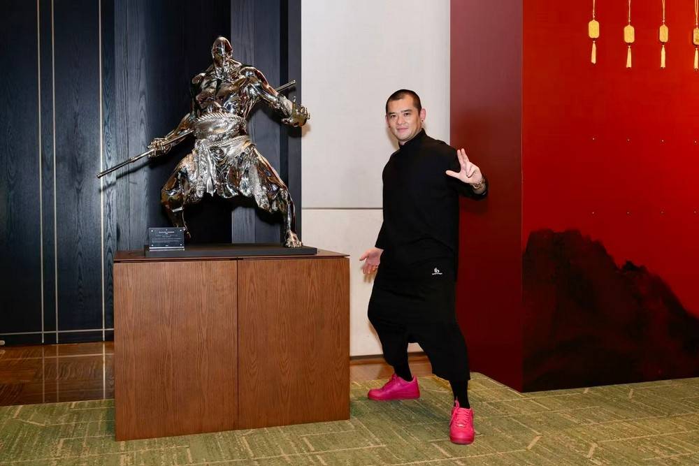 本次金鸡百花电影节“香港之夜”活动特别强调了江湖主题。主办方专程从香港邀请到了金庸先生次子查传倜来到了现场。同时,雕塑艺术家任哲的侠义主题雕塑,在现场完美呈现,将“江湖”主题氛围拉满。