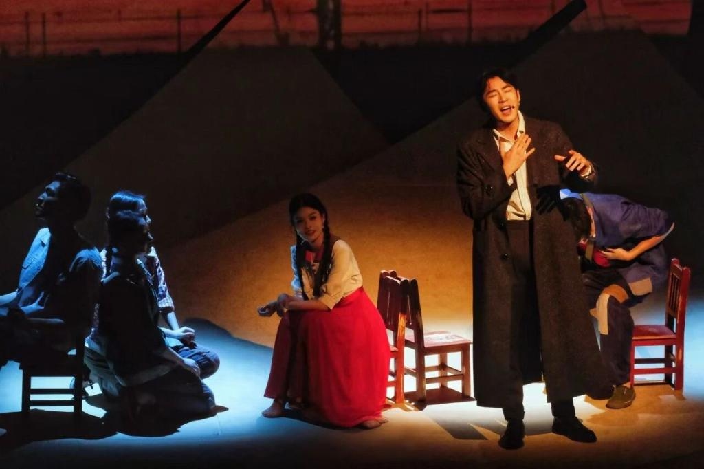 青年演员湛嘉丽在剧中一人分饰两角,其清亮婉转的嗓音与细腻精准的肢体表达,生动诠释了不同时代女性共有的坚韧与偶尔的迷茫。探班现场,湛嘉丽、刘宇希、房静、明家歆几人演唱的《女人啊女人》片段,一句“我仍旧会光芒四射”的歌词,瞬间点燃全场,引发深切共鸣。