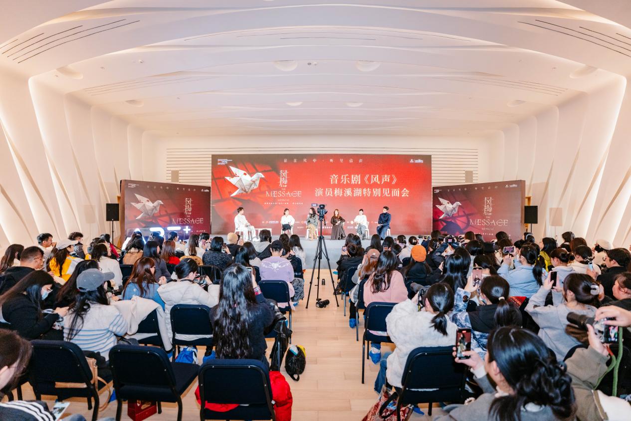 11月20日晚,根据麦家原著改编·阿云嘎作品的现象级音乐剧《风声》在长沙梅溪湖大剧院举办了线下见面会。总制作人阿云嘎与“李宁玉”饰演者蒋倩如、郭耀嵘,“顾小梦”饰演者陈昊宇、徐瑶亮相长沙梅溪湖大剧院,与观众分享台前幕后的创作故事。此次梅溪湖特别见面会,带领观众深入感受这部音乐剧背后的情感张力与艺术追求。