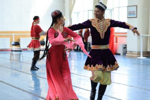 当我们走进阿里木江所在的新疆艺术剧院木卡姆艺术团剧场,艺术团正在准备为新疆非遗中心展演进行整场带妆彩排。歌唱、舞蹈、演奏等多种表现形式的十二木卡姆经典节目依次呈现,展现出了这一综合性艺术形式的完整风貌。