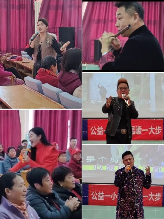 11月17日上午,公益团队首先抵达琉璃庙镇受灾村落,实地了解房屋修缮、基础设施重建进展,并向村民捐赠米面粮油等生活必需品。艺术家们现场表演了歌曲、舞蹈等节目,其中白雪演唱的《爱的世界》引发村民共鸣,掌声不断。她表示:"艺术不仅能抚慰心灵,更应成为连接情感的桥梁,希望用歌声为乡亲们增添重建家园的信心。"