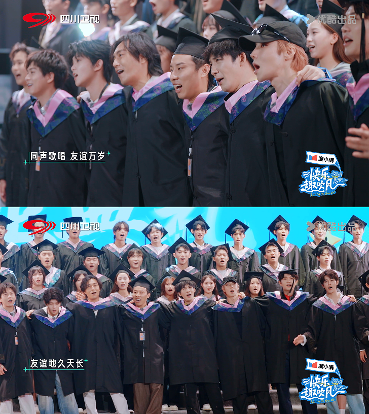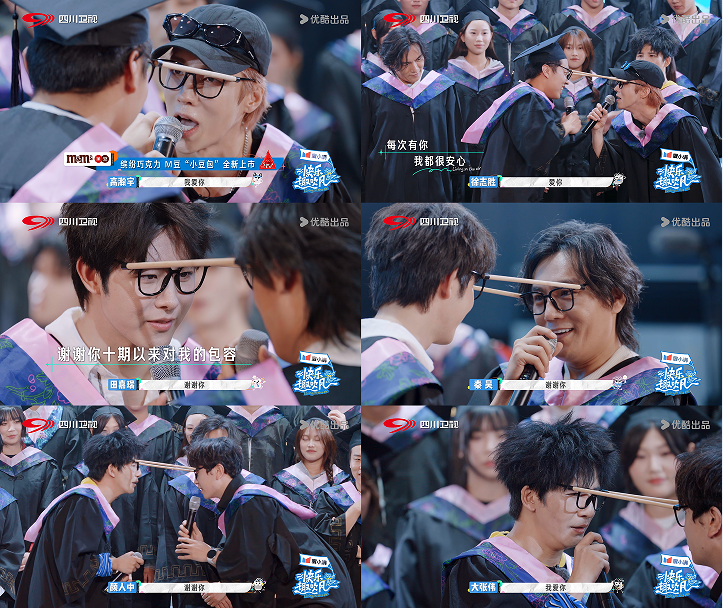 本期以“重返校园—社会演绎—十年歌会”为主线,用鲜活场景勾起观众的青春回忆。接力拔河、创意毕业照、毕业告白等环节,巧妙融入往期经典互动与名场面,让观众在会心一笑中重温整季的温暖点滴。