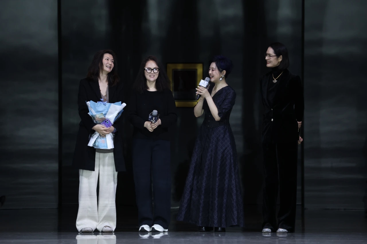 展览是由12月7日下午3点的嘉宾专场时装秀启幕。近40位模特身着房莹最新的精致典雅之作,其充满活力的演绎,仿佛折叠时空,瞬间让人联想起这位设计师的作品,曾于巴黎卢浮宫、纽约贾维茨艺术中心等国际、国内舞台和2008北京奥运会开幕式留下过的优雅身影,直观揭示了艺术家创作感知的源头。在主持人许戈晖的引导下,策展人及与会学者的精彩发言,在观展前后引发了持续探讨,核心聚焦于:一位成功的时尚创作者如何潜入绘画的深海?