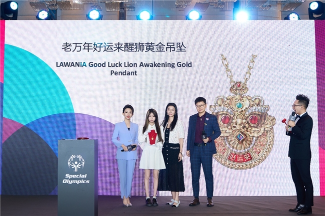 根植中华文化的百年金工品牌老萬年,以慈善伙伴身份深度参与,携年度匠心之作“狮来运转”足金吊坠首发呈献。品牌CMO谢臻先生亲临现场,深刻阐释作品蕴含的文化厚度和工艺价值,以及品牌与特奥精神的内在共鸣。