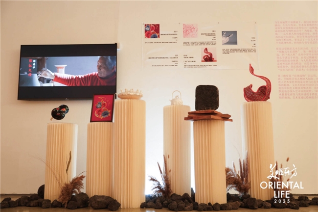 本届“美曜东方“主题为“时间的形意”,通过具体的“形”,构建流动的“意”,并由此展开一场传统手工技艺与当代艺术主题相互融合、东方智慧与现代表达彼此对话的创造性实践。无论哪种艺术形式,无外乎在有限的形式中创造象外之象的意境——无论是艺术家蔡锦画布上那些如生命般蔓延、低语的笔触,京绣中丝线行走所勾勒的灵动气韵,金工银器在锤锻间的生活仪式感,还是竹编以纤维结构编织出的清雅之风,皆是如此。手工之美,正是将自然与时间之“形”,转化为人文与精神之“意”,梳理出一条可供驻足、品味与沉思的精神轨迹。