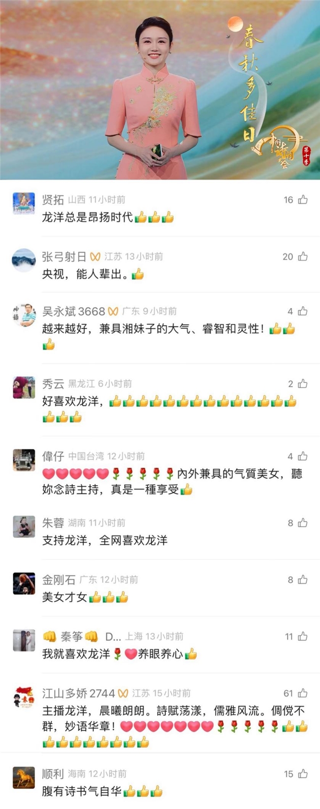 龙洋与诗词的缘分,始于2020年接棒《中国诗词大会》。鲜少有人知道她当初作为“救火队员”临时顶上,扛住压力负重前行,她用6年时间埋首深耕,让这档文化旗舰节目焕发出青春的崭新活力。而诗词赋予她的文化底蕴,也成为她通往更广阔舞台的钥匙。