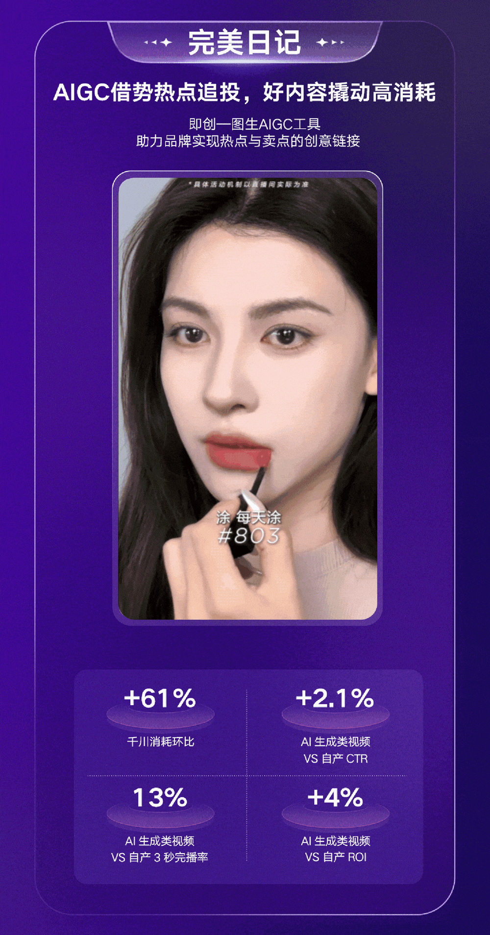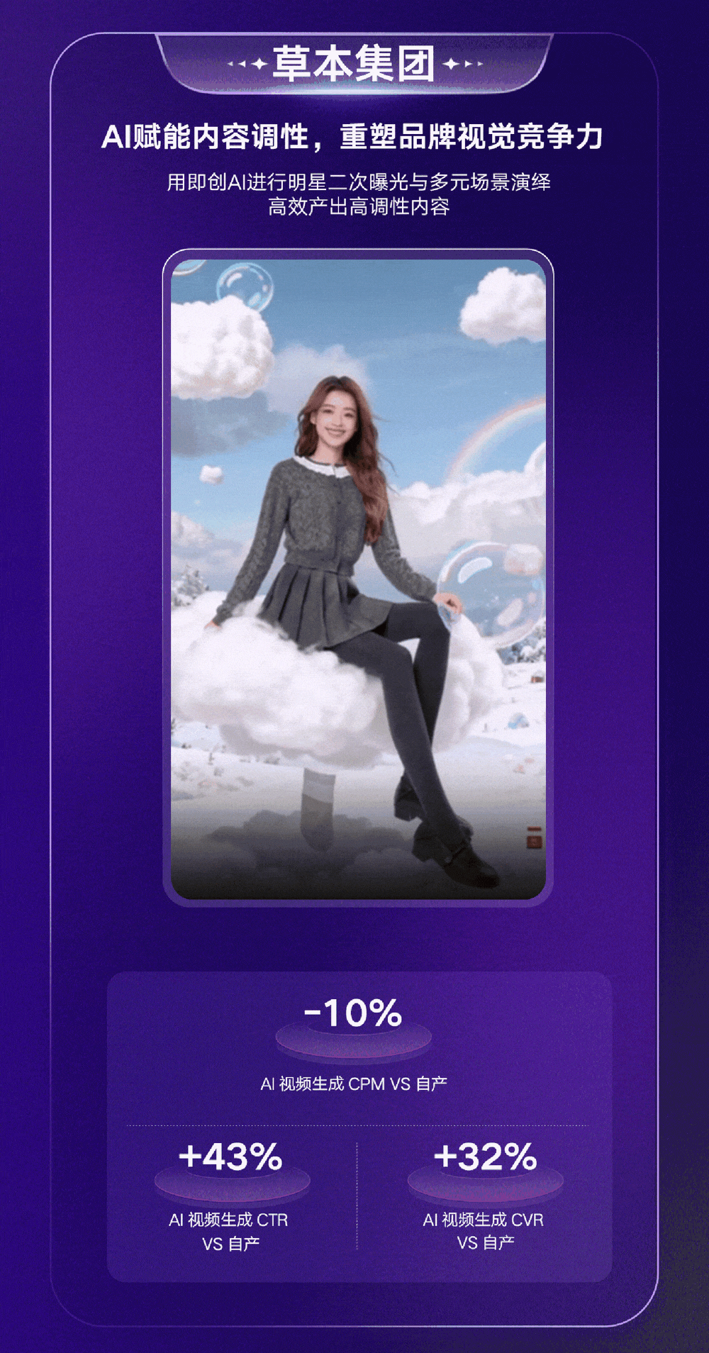 “使用即创生成的AI创意片头,ROI甚至高于自制素材。”一位美妆头部品牌如此总结。社交行业某品牌则表示:“借助AI快速产出节日热点素材,在预算收紧的Q4实现了高性价比跑量。”品牌的真实反馈表明,即创AI的价值已切实体现在效果提升与效率优化中。