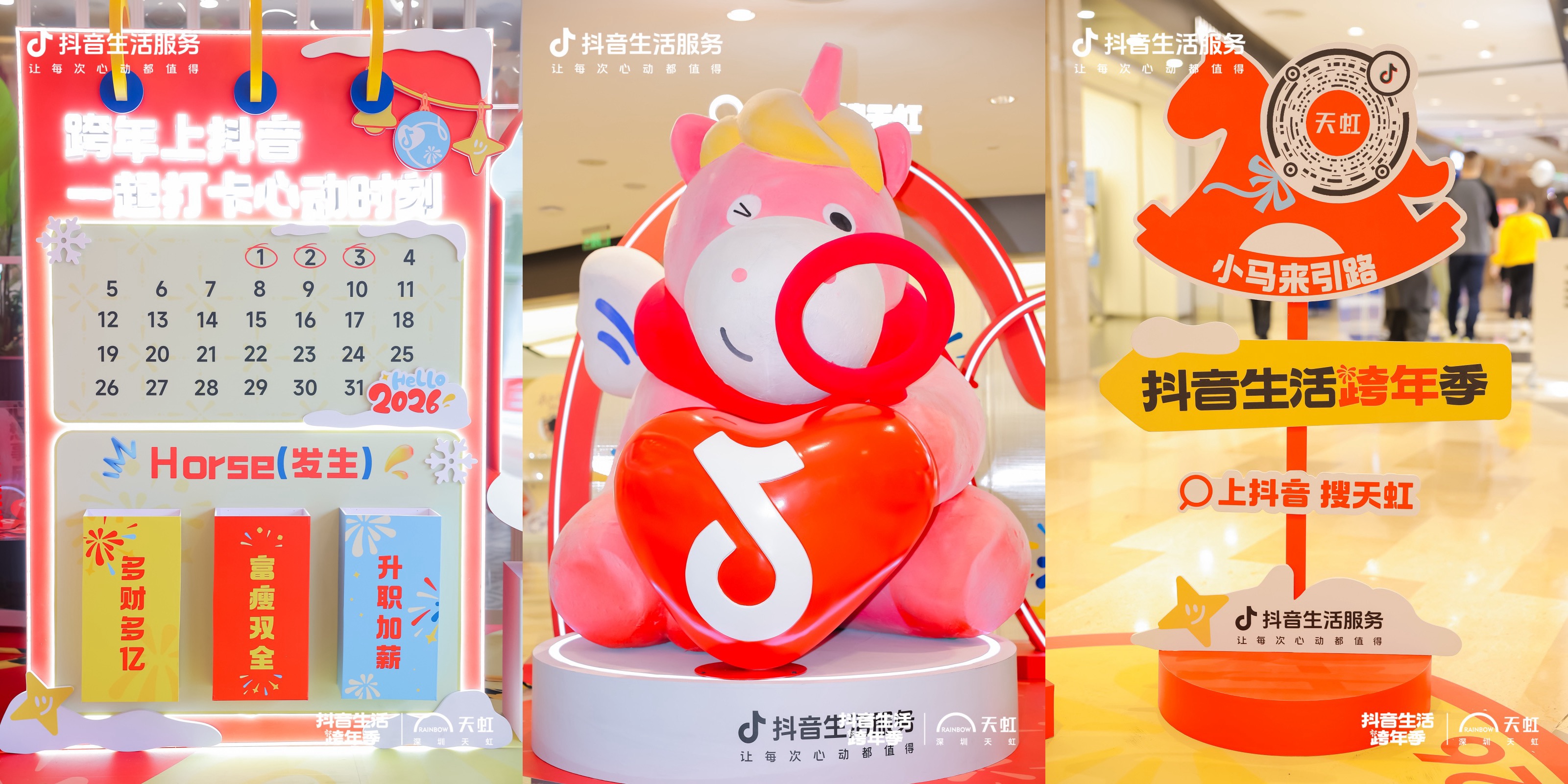 除了购物能省钱,跨年期间更能省心解锁多重惊喜活动!不仅线下有「抖音生活服务」的小粉马可以打卡拍照,还有明星应援、音乐派对、民俗非遗等主题内容,进一步提升了仪式感与情绪价值。让无论是粉丝乐迷还是文化爱好者,都能找到走出家门的理由,加入这场温馨又热闹的新年聚会。