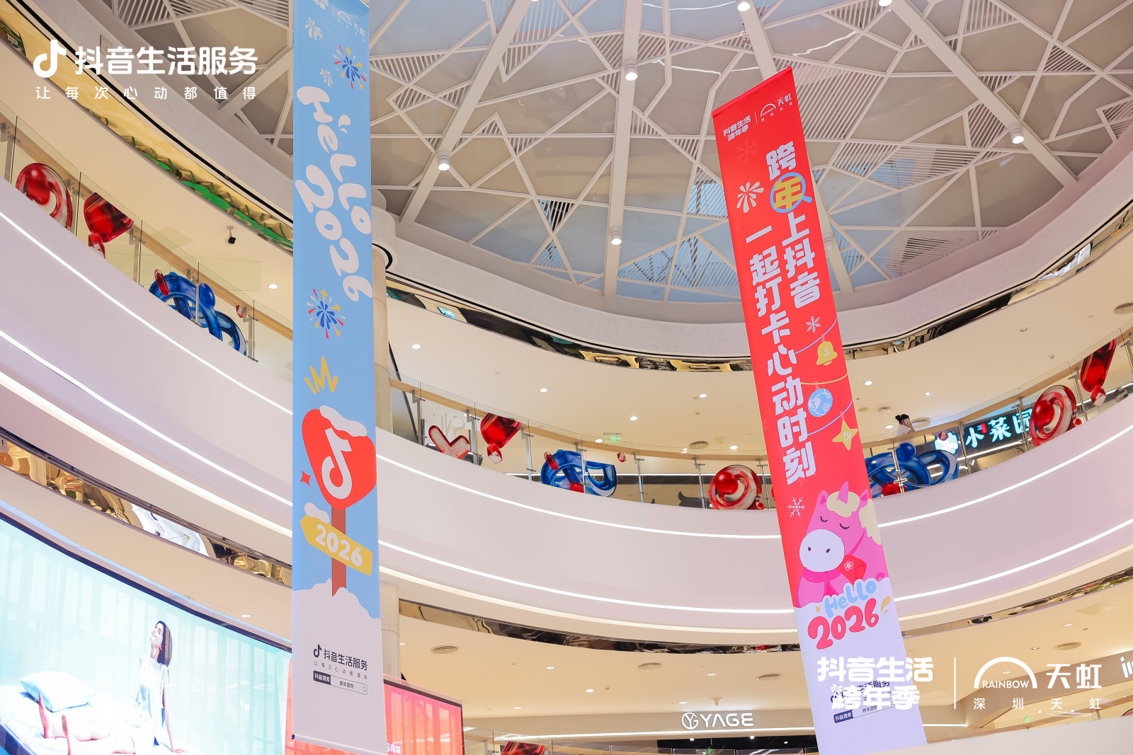 2025年12月31日至2026年1月2日,「抖音生活跨年季」在福永天虹、新沙天虹、宝安天虹分别邀请了“一日店长”,与大家近距离互动。12月31日魏宏宇空降福永天虹,在跨年夜前与财神一同为大家送祝福,用真诚的回答与歌声告别2025。2026年新年第一天,SNH48成员许杨玉琢可爱亮相新沙天虹,不仅展示清唱与舞蹈实力,更与粉丝互动猜歌,让现场笑声与旋律交织。1月2日宝安天虹迎来青春偶像孙滢皓化身一日店长,带来热情四溢的舞蹈表演,现场游戏环节更是展示出了与粉丝的默契和满满的才气。