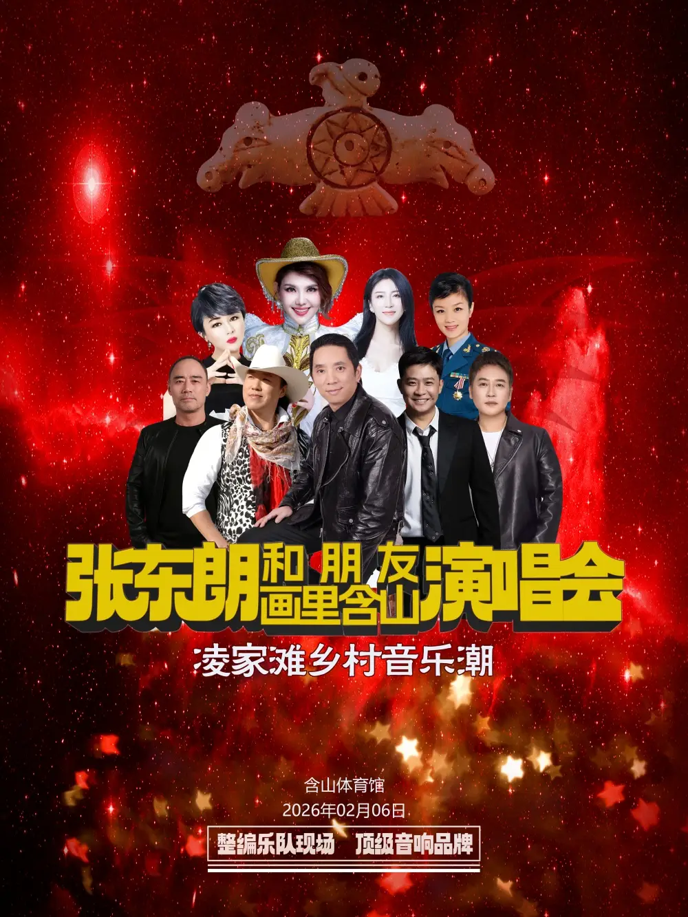 张东朗说:家乡是心中最美的旋律。他这么说也这么去做了!凌家滩上下五千多年,玉龙呈祥;濡须河通肠江接巢湖,流水悠悠!张东朗用音乐唱响千年鼓韵,奏响文化强音;2026年2月6日晚群星璀璨,相聚含山体育馆,共绘“非常之观,画里含山”!