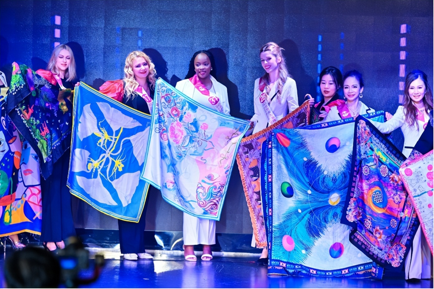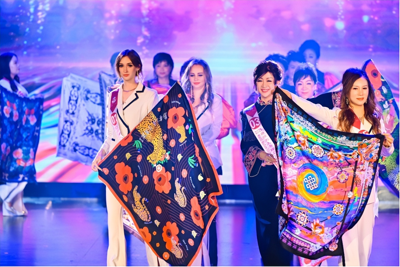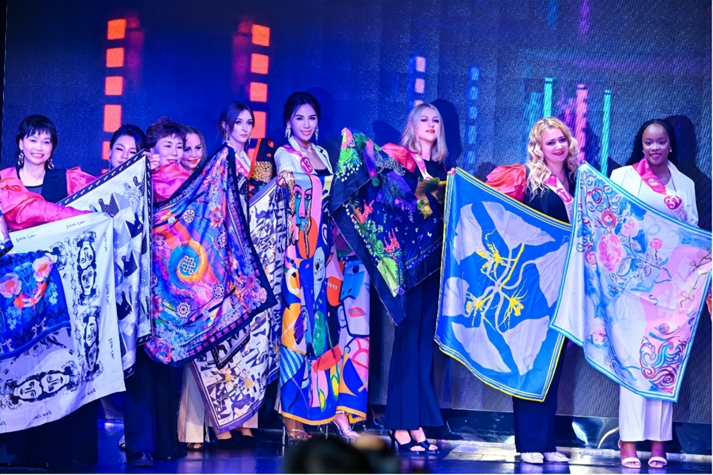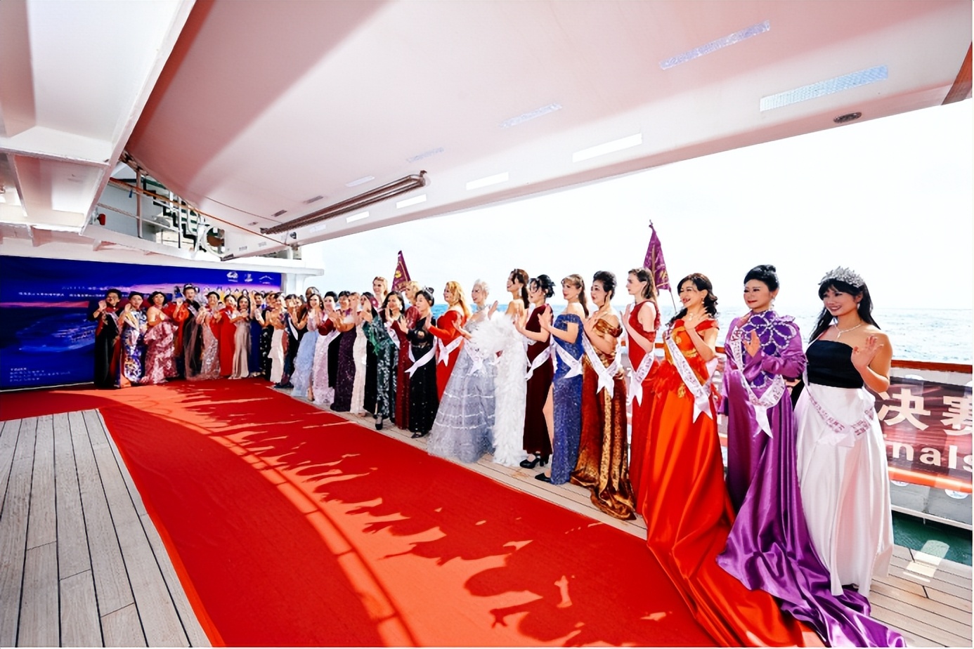 值得一提的是,此前海上红毯大秀中备受赞誉的章语丝巾非遗纹样与MOXIE墨写非遗云肩,在总决赛舞台上再次绽放光彩。这些承载中华传统文化基因的配饰,将云肩的层叠对称之美与丝巾的灵动飘逸之美感展现得淋漓尽致,不同肤色的佳丽佩戴着这些东方美学信物,身着旗袍演绎传统与现代的交融之韵,成为“中国文化.世界印象”的生动注脚,让非遗元素借世界旗袍皇后的舞台在国际舞台上焕发新生。此外,佳丽们身着统一红色皮衣搭配旗袍元素亮相邮轮外景拍摄的场面,更以中国红与蔚蓝大海的强烈碰撞,诠释东方女性刚柔并济的魅力,成为赛事传播中国文化的标志性画面。