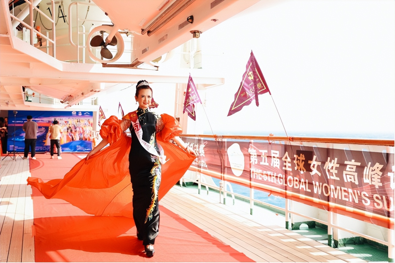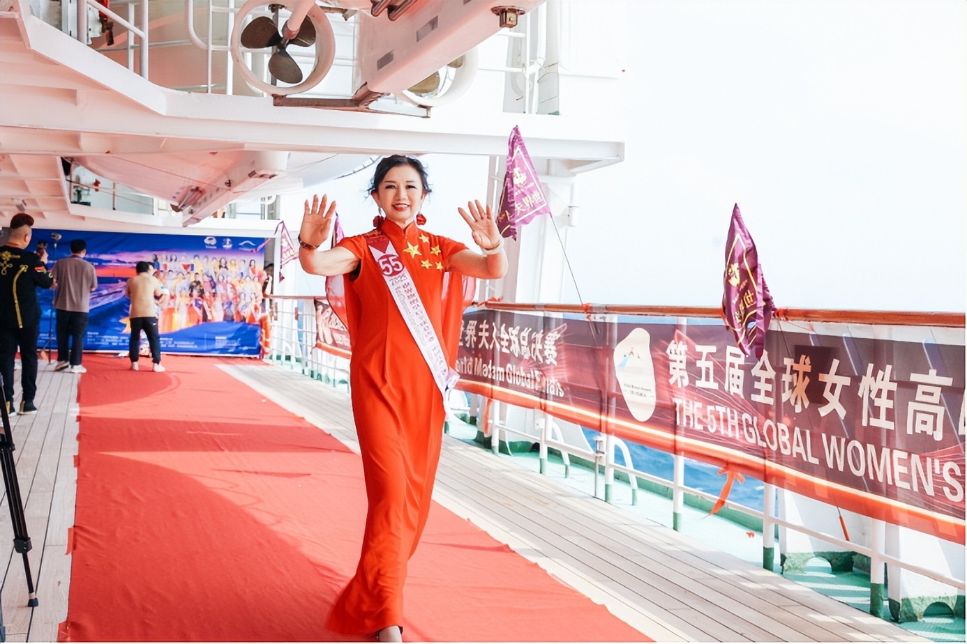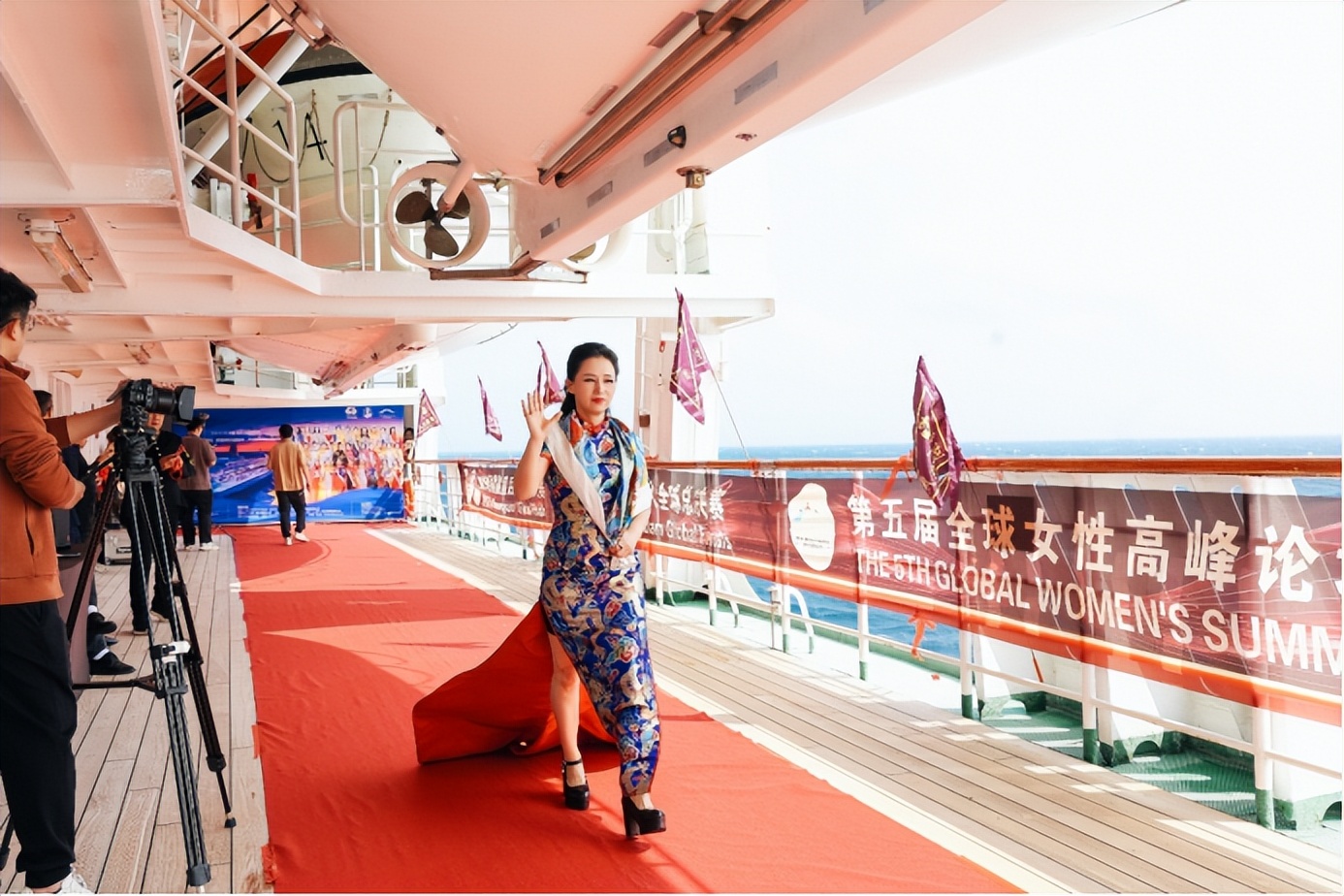 本次全球总决赛在传承中突破创新,以世界旗袍皇后赛事为载体,实现两大核心升级,尽显文化传播的匠心巧思。在举办赛事模式上,赛事彻底告别传统陆地舞台,首次以无垠大海为天然赛场,将鼓浪屿号邮轮的一站式服务功能与海洋的辽阔包容意境完美融合,让身着旗袍的女性力量在与自然的对话中愈发鲜活立体,更让中华服饰之美在蔚蓝海面上向世界绽放。世界旗袍皇后创始人、全球主席冯跃振曾阐释,大海的辽阔与包容恰如女性坚韧而温暖的力量,更契合中华传统文化兼容并蓄的特质,能让不同国家、不同文化背景的人通过旗袍读懂中国,打破文化隔阂、实现深度联结。