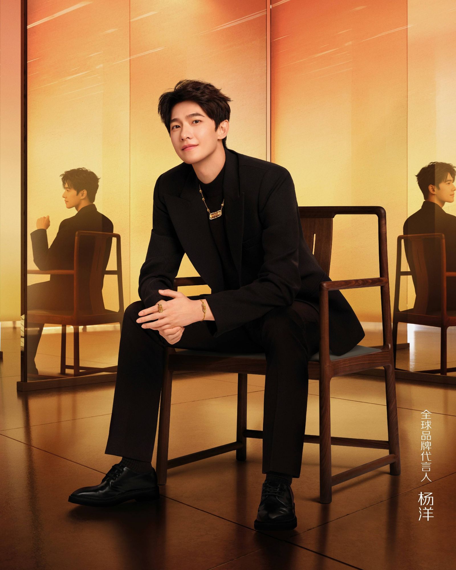 在视频中,杨洋身着剪裁利落的经典黑色西装优雅亮相,于低调沉稳中尽显绅士格调。戒指、项链与手链点缀其间,在从容演绎下与整体造型融为一体,既华贵夺目,又与他清俊矜贵的气质相得益彰,共同勾勒出自信而闪耀的非凡形象。