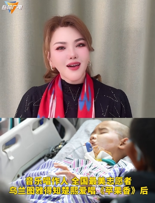 近日,岳阳8岁男孩刘楚熙车祸昏迷55天后,被老师同学的歌声唤醒的事迹感动全网,著名歌手、全国“最美志愿者”乌兰图雅亦被这份温情所打动,为楚熙小朋友特意录制了他最爱听的歌曲《苹果香》,用歌声为楚熙康复之路注入精神力量,也诠释了音乐承载爱心、唤醒希望的奇迹力量。