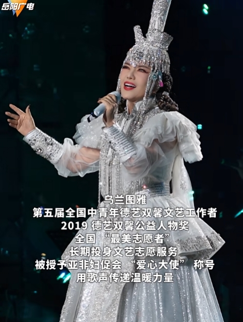 这些年,作为中国文艺志愿者,乌兰图雅始终将“送欢乐、走基层”作为责任,足迹遍布西藏、云南、内蒙古等偏远地区,为留守儿童捐赠书籍、乐器与学习用品,用音乐点亮孩子们的梦想。还曾创作演唱公益歌曲《山里的孩子》,用旋律传递对困境儿童的关怀。正如她所说:“公益是人性的善的表现,一句温暖、一个拥抱就能点燃孩子内心的梦想,这份价值无可替代。”