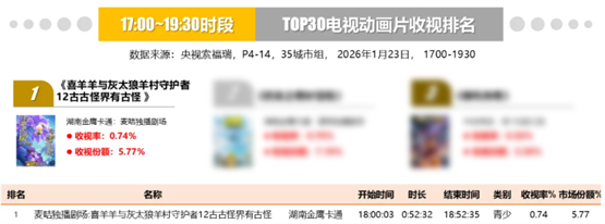 开播至今,《羊村守护者12之古古怪界有古怪》在各个平台取得了亮眼的播放数据。开播当天,电视端动画片收视第一。在三大网播平台,摘得13榜榜首。在优酷平台,播出第三天热度直飚8500。