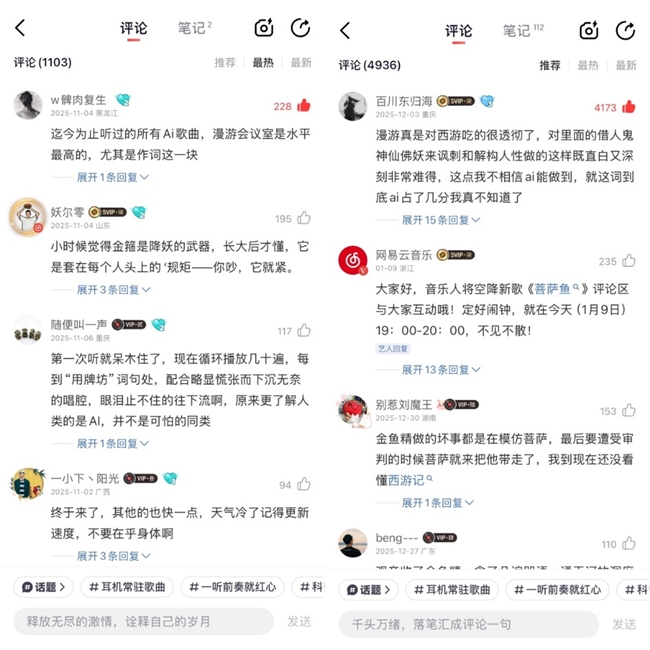 网易云音乐在2025年12月举办“百万奖金AI音乐创作大赛”,鼓励优质AI歌曲的创作,「漫游会议室」作为评委之一参与评审。AI时代,「漫游会议室」认为不应把AI当做竞争对手,而应当做工具,AI也不会让音乐人失业。即便他在运气爆棚的时候用AI能半天写出一首让自己满意的歌,但他也说,缺乏专业的音乐知识也是他的瓶颈。并且很多作品需要人和AI一起反复打磨,因而AI时代好作品的关键还是“人”。