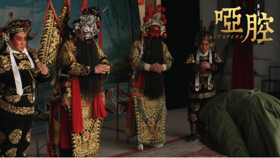 《哑腔》的开机几经坎坷,又因各种原因数次停机。拍摄时,很多群演就是当地的秦腔艺人,有人刚在灵棚唱完《窦娥冤》,转头就扛着道具箱赶下一场。他们完全不用“演”,油彩没擦净的脸、水袖上磨出茧的指节,就是民间秦腔艺人最鲜活的生活状态。